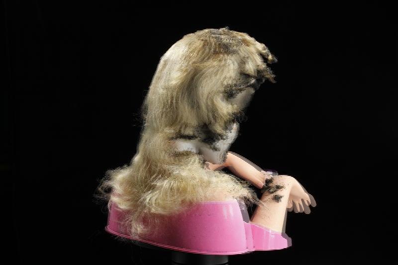 Burned Barbie doll (no glasses).