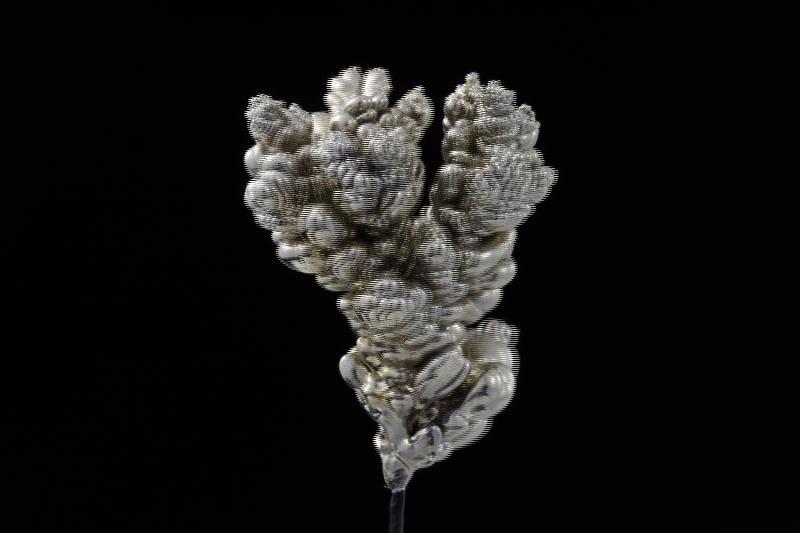 These crystals grow slowly on the racks used to hold bumpers in the electroplating solution: Where a flaw develops in the insulation one of these starts to grow, and it just keeps growing until someone notices it and whacks it off with a hammer or something. Must be a real nuisance.