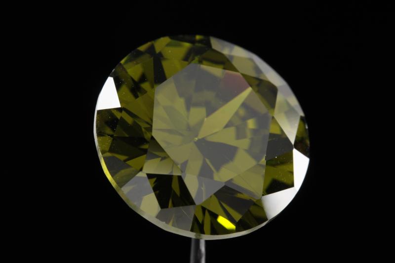 Peridot is a valuable type of gemstone. This is cheap cubic zirconia colored to look like peridot, in much the same way that uncolored cubic zirconia simulates diamond. What makes it interesting to me is that praseodymium is used to impart just the right fake shade of yellow to cubic zirconia to make it look like peridot. There are not a whole lot of other things you can do with praseodymium, so I'll take it!